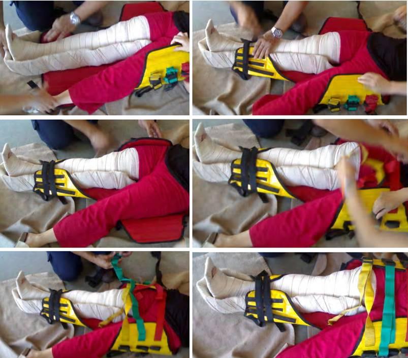 - Uno de los sanitarios debe realizar una tracción axial del miembro lesionado. Ésta se mantendrá hasta la colocación completa del dispositivo.